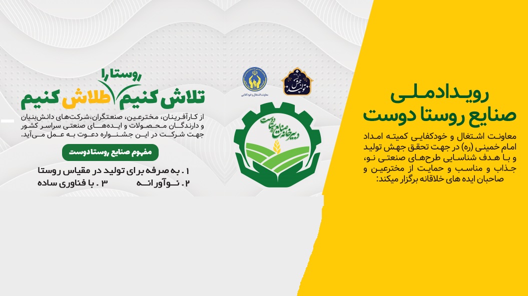 به گزارش روابط عمومی پارک علم و فناوری آذربایجان غربی، به منظور افزایش بهره وری در بخشهای مختلف تولیدات روستایی از جمله کشاورزی، دام پروری، صنایع دستی، فناوری اطلاعات و سایر زمینه ها و با هدف شناسایی صنایع روستادوست و پشتیبانی از آنها جهت تقویت اشتغال زایی و جهش تولید در روستاها و مناطق محروم، معاونت خودکفایی و اشتغال کمیته امداد امام خمینی (ره) با برگزاری رویداد ملی صنایع روستادوست درصدد است صنایع و تجهیزات مناسب برای اقتصاد را شناسایی و از آنها پشتیبانی و حمایت کند.