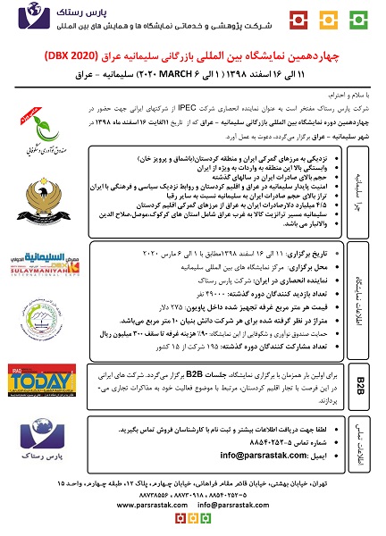 چهاردهمین نمایشگاه بین المللی بازرگانی سلیمانیه عراق (DBX2020) برگزار می شود