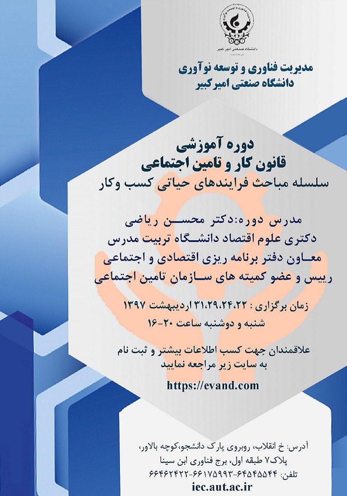 اطلاعیه ها برگزاری دوره آموزشی قانون کار و تأمین اجتماعی در دانشگاه صنعتی امیر کبیر Temmuz 17, 2020 Posted by masteruser 08 May