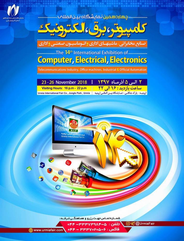 چهاردهمین نمایشگاه بین المللی برق، الکترونیک، کامپیوتر و صنایع مخابراتی و دوازدهمین نمایشگاه بین المللی ماشینهای اداری و اتوماسیون صنعتی و اداری 2 الی 5 آذر ماه 97 در محل شرکت نمایشگاه بین المللی ارومیه برگزار میگردد.